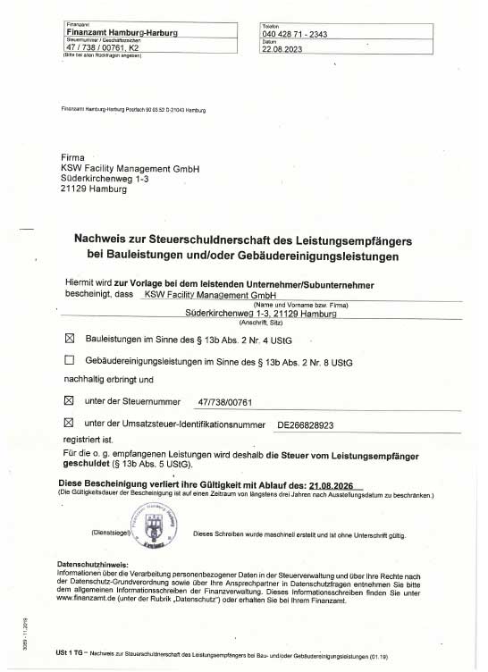 Nachweis zur Steuerschuldnerschaft
