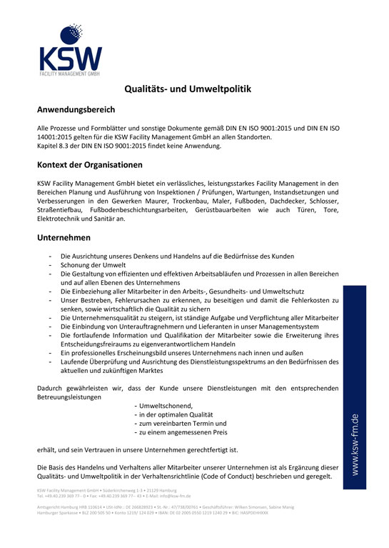 Qualitäts- und Umweltpolitikpolitik